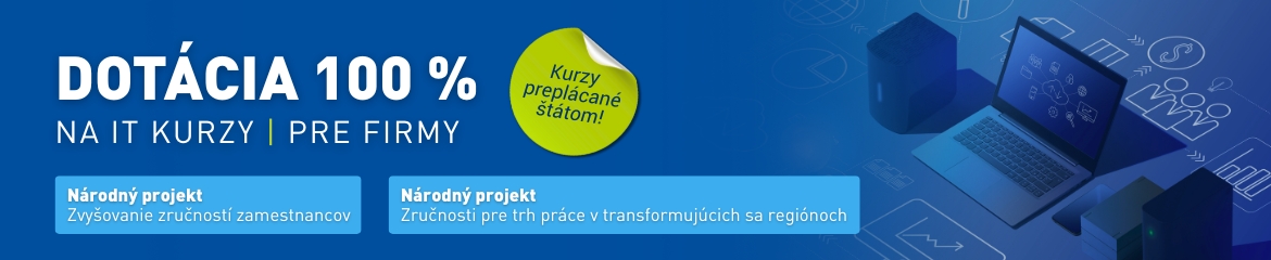 Ako certifikovaná vzdelávacia inštitúcia ponúkame viac než 2 000 kurzov a školení zameraných na najrôznejšie IT technológie. Všetky spĺňajú podmienky národného projektu a sú zamerané na najžiadanejšie digitálne zručnosti na trhu práce: Kurzy realizujeme prezenčne aj online v reálnom čase a každý účastník získa po absolvovaní certifikát. |